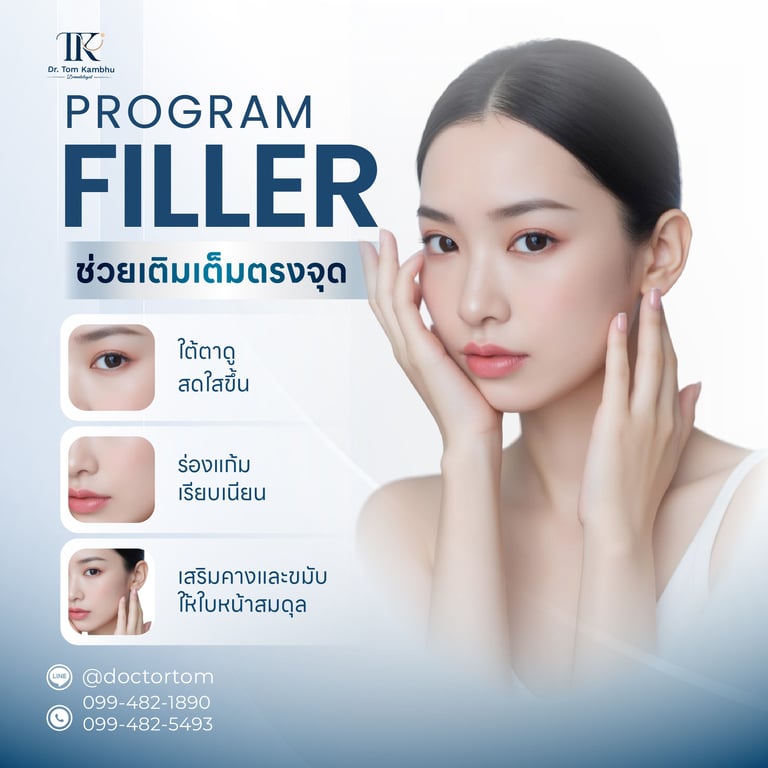 เป็นหัตถการที่ช่วยเติมเต็มร่องลึก ปรับรูปหน้า และเพิ่มมิติให้ใบหน้า โดยใช้สารเติมเต็ม พร้อมเทคนิคการทำหัตถการเพื่อผลลัพธ์ที่ ดูละมุน ไม่เป็นก้อน และเป็นธรรมชาติ