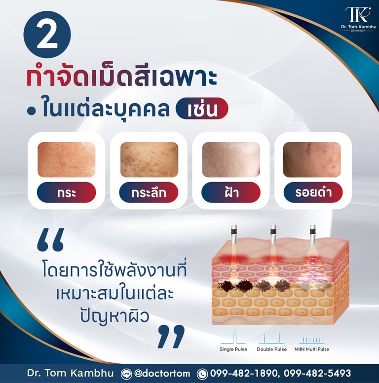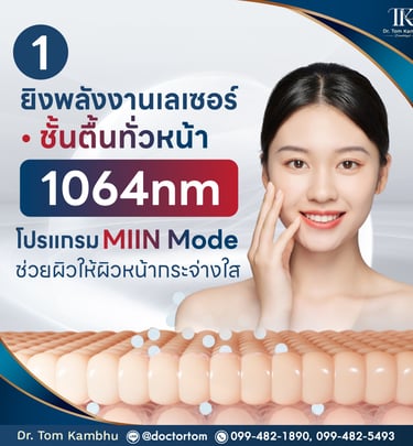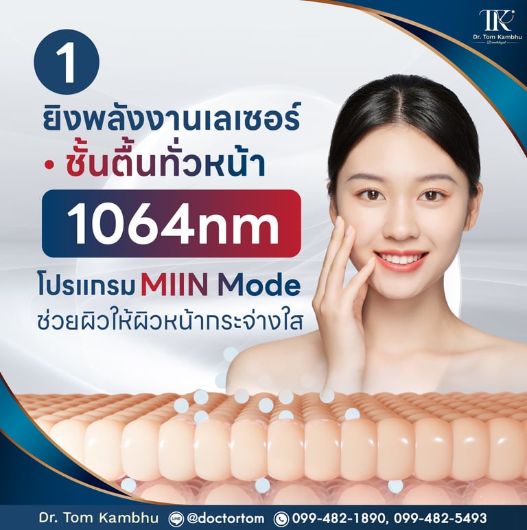 เทคโนโลยีของ MIIN LASER ถูกออกแบบมาให้เหมาะกับ ผิวเอเชีย ที่มักมีโอกาสเกิดปัญหาเม็ดสีเมลานินสูงกว่า เช่น ฝ้า กระ จุดด่างดำ เพราะสามารถปล่อยพลังงานได้อย่างนุ่มนวลและสามารถปรับระดับพลังงานให้เข้ากับแต่ละสภาพผิว เพื่อให้ผลลัพธ์ชัดเจนและปลอดภัย