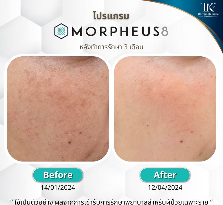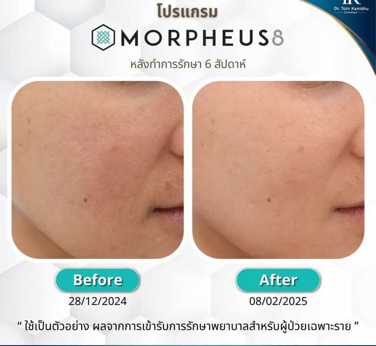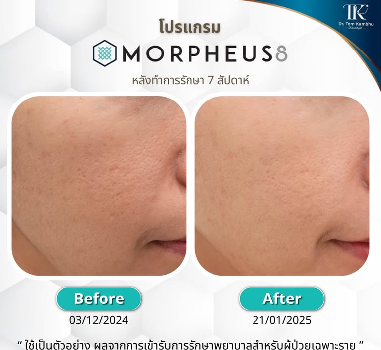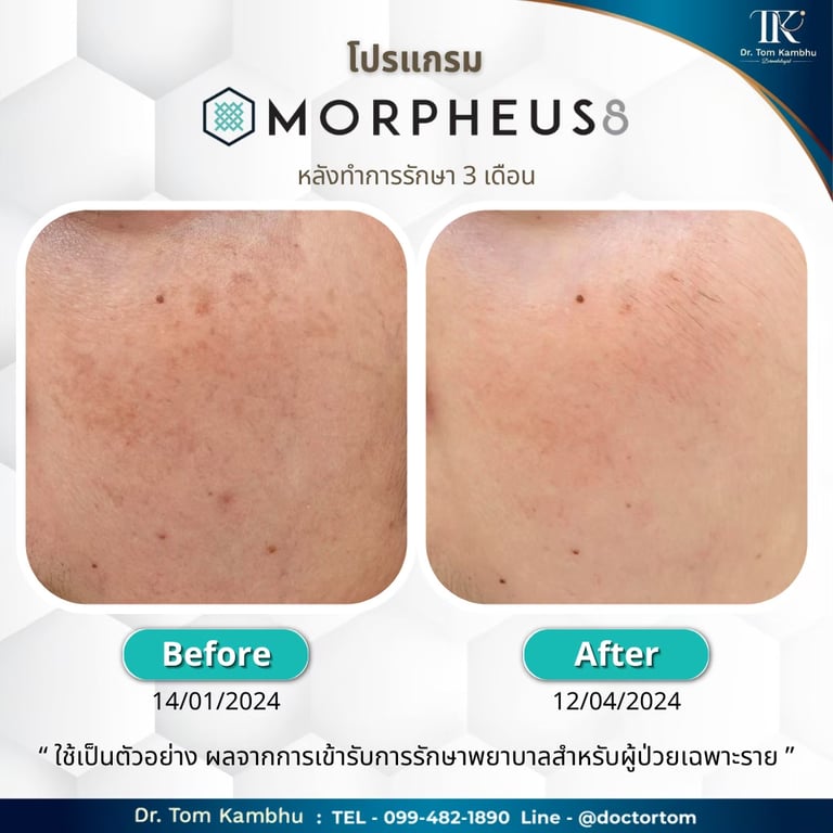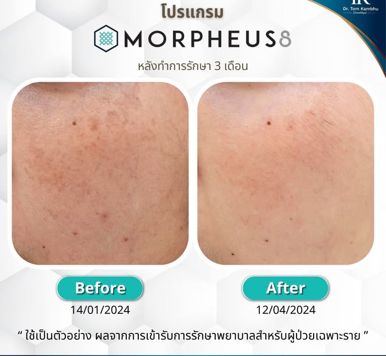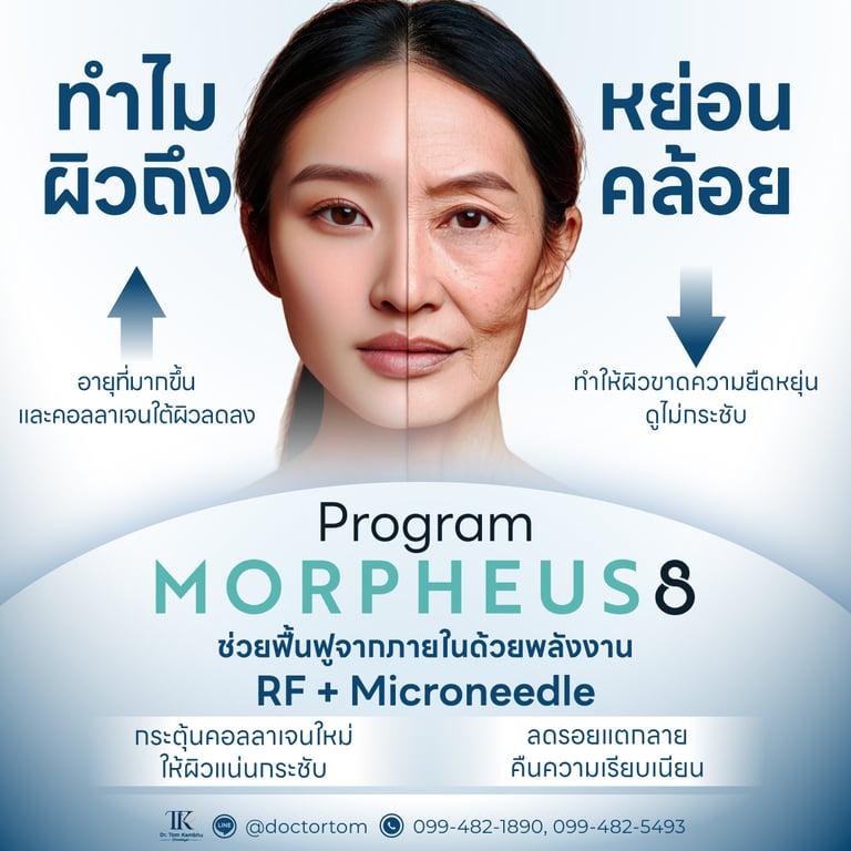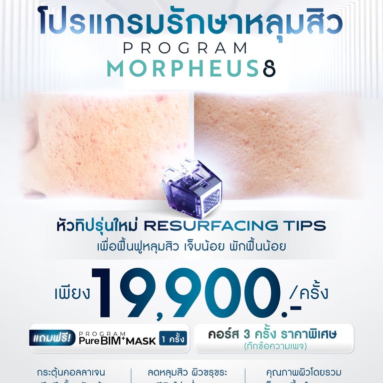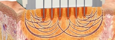 ด้วยการใช้หัวเครื่องมอร์เฟียส ที่มีลักษณะเป็นเข็มสีทองขนาดเล็กเรียงตัวกัน (Golden Micro Pins) ซึ่งมีขนาดเล็กเท่าเส้นผมเป็นตัวยิง จะช่วยกระตุ้นการจัดเรียงตัวใหม่ของคอลลาเจนที่อยู่ใต้ชั้นผิว