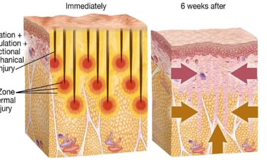 คอลลาเจนเกิดการ denaturation ส่งผลให้คอลลาเจน หดตัวและเกิดการจัดเรียงใหม่ (remodeling)