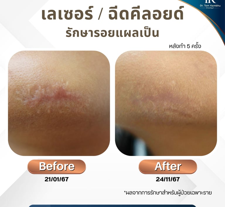 แผลเป็นนูน แผลเป็นคีลอยด์ แนะนำ 5-10ครั้ง ทุกๆ 1เดือน